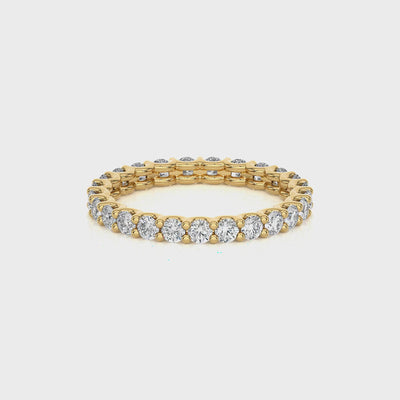 This gorgeous diamond wedding ring features a scallop setting and round brilliant diamonds all the way around. Choose from a variety of metal options and lab or natural diamonds. Elevate your special day with this elegant eternity band.