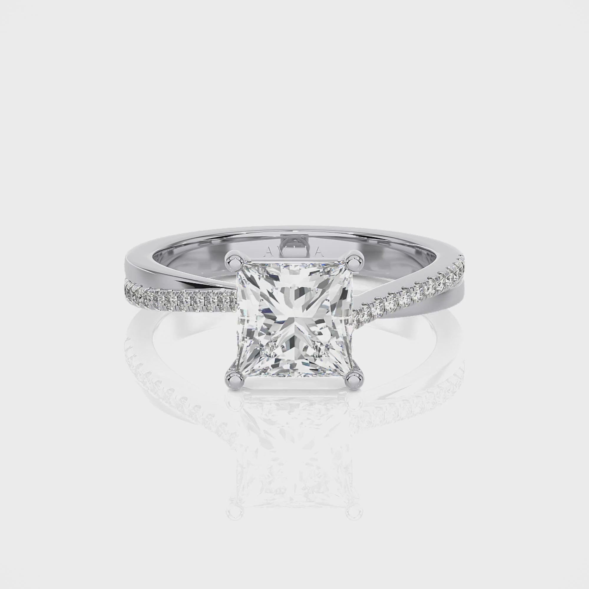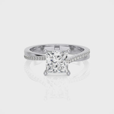 The Coco ring is a beautiful diamond engagement ring set with a Princess cut diamond. The diamond shoulder subtly laps over to create a beautifully elegant look.