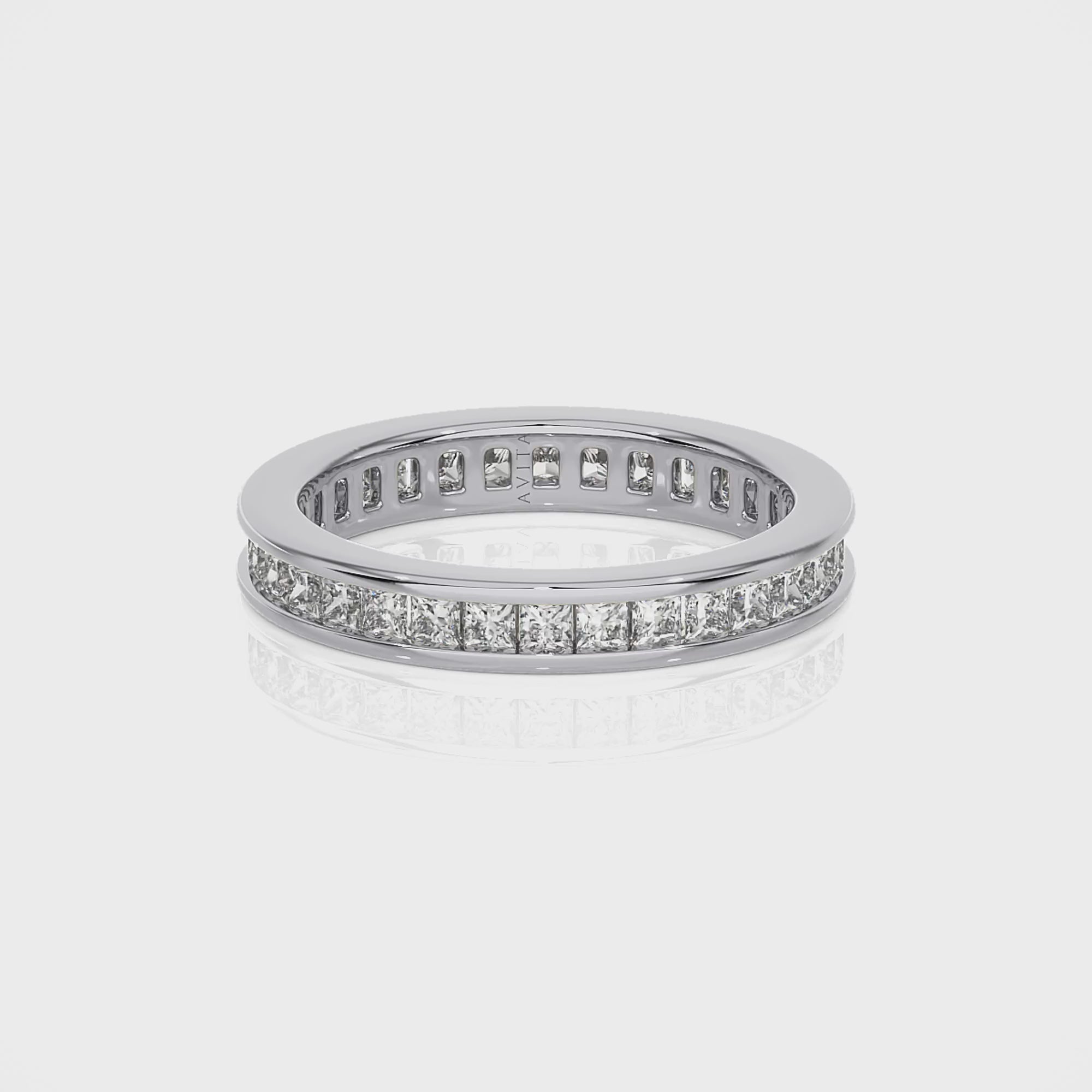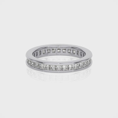 Introducing Ella - a stunning, channel-set band highlighting your choice of precious metal, adorned with beautiful princess-cut diamonds set the entire way around. Perfect as a wedding band or eternity ring. Elevate your style with Ella.