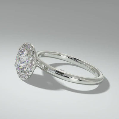 The 'Mabel' is a highly contemporary piece that still manages to retain a classic vintage styling. The centre diamond is held as if suspended in a 4-point claw, then surrounded in a circle of stones in an innovative contrast of precious metal. This means that the quality ring shaft has no need to sparkle and can let the centrepiece rightly dazzle. The 'Mabel' is available in a choice of precious metals and diamond weights to suit your jewellery taste.